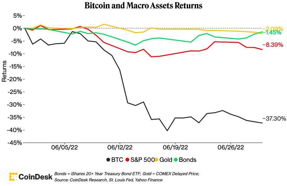 The newsletter content over the past couple weeks has been relatively consistent: decline in the overall public markets → investors respond by consolidating their capital into risk-off assets → decline in cryptocurrency prices.