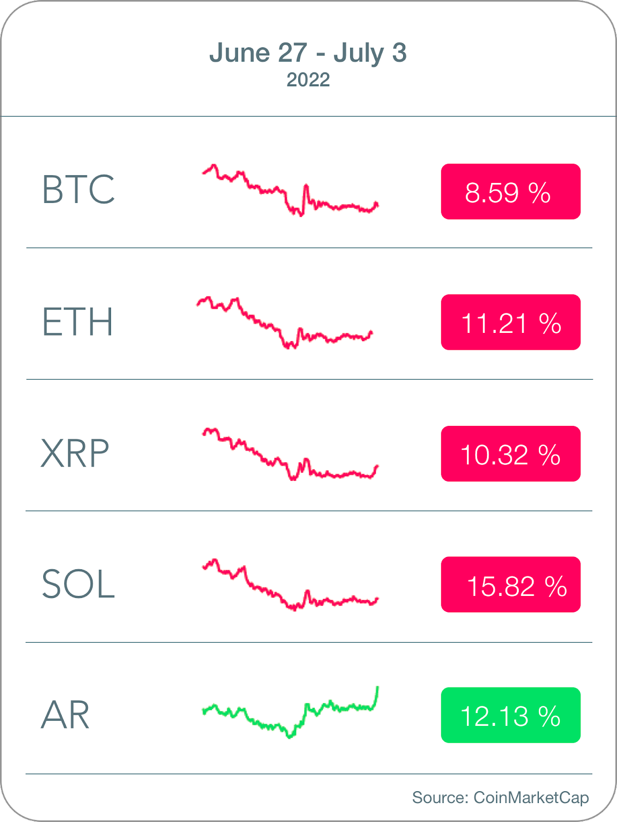 Arweave (AR) was our pump coin of the week, rising just over 12%